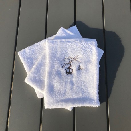 These washcloths with cabla car are availanle in White and Grey.