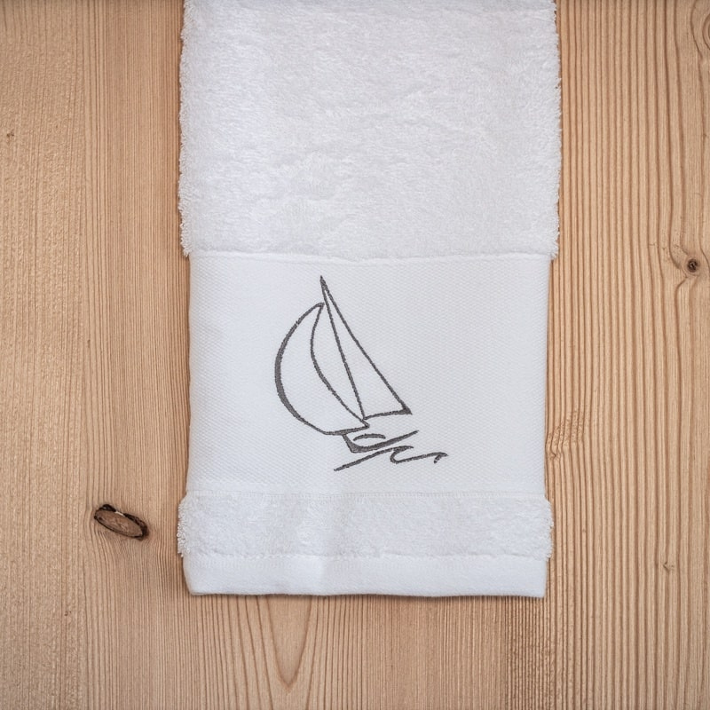 The coastal bath towel with a sailboat is the towel you need to keep the coastal spirit in your bathroom.