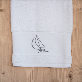 The coastal bath towel with a sailboat is the towel you need to keep the coastal spirit in your bathroom.