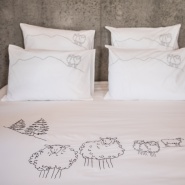 The sheep duvet cover is embroidered and it is made of 100% cotton.