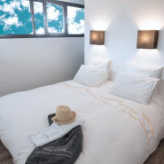 The fish duvet cover is embroidered and it is made of 100% cotton, 200 threads/inch. It is very pleasant to the touch and very easy to iron thanks to the "easy care" treatment provided to the fabric.