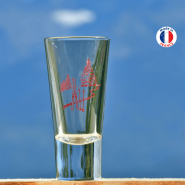 The ski shot glass has been silk-screened at a very high temperature (1112°F) to guarantee their resistance.