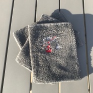 The grey embroidered washcloth with a cable car will be an essential for your skincare and it will also complete your mountain bath linen!
