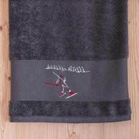 Las toallas de baño Vagabonde están hechas de algodón y están bordadas con un patrón de montaña. El tamaño de las toallas de baño es de 100x150 cm.
