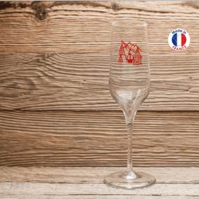Las copas de champaña Vagabonde están serigrafiadas con bellos motivos de montaña. Son elegantes y con mucho estilo; Perfectas para un buen servicio durante las veladas festivas.