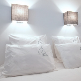La funda nórdica costera esta bordada con un velero sobre un percal de algodón, 80 hilos/cm². Es muy agradable al tacto y muy fácil de planchar gracias al tratamiento de "fácil cuidado" proporcionado a la tela.