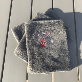 La manopla de baño gris bordada con un Teleférico es el elemento que dará a tu cuarto de baño un toque montañés, elegante y con estilo. Resaltará el espíritu montañés manteniendo el lado moderno y auténtico de la decoración de tu hogar.