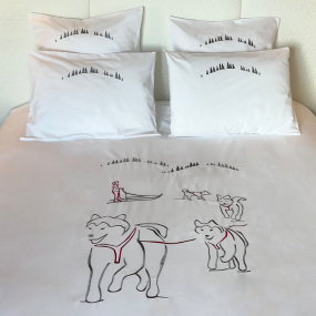 La funda nórdica invierno esta bordada en el centro con Perros de Trineo. Está hecha 100% en percal de algodón, 80 hilos/cm²