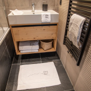 La toalla de baño blanca con ovejas combina con toallas de lavabo, toallas de mano, alfombras de baño y manoplas de baño de la misma coleccion. Tambien puedes combinarla con la funda nordica invierno de la coleccion "ovejas"