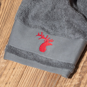 La toalla de lavabo gris bordada con un ciervo esta hecha 100% en algodón.