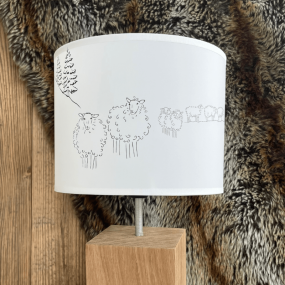 La lampe Mouton est assortie à la housse de couette Mouton et elle est coordonnée à l'applique Mouton. L'abat jour Mouton est vendu soit seul soit avec le pied de lampe bois. Le dessin des moutons est imprimé sur l'abat jour. La lampe Mouton pourra être posée sur une table de chevet dans une chambre à coucher ou sur une console dans un salon.