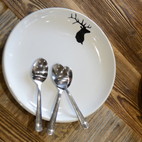 L'assiette Cerf Noir est coordonnée à toute la collection de vaisselle cerf : au Bol à déjeuner, ramequins, coquetier et saladier.