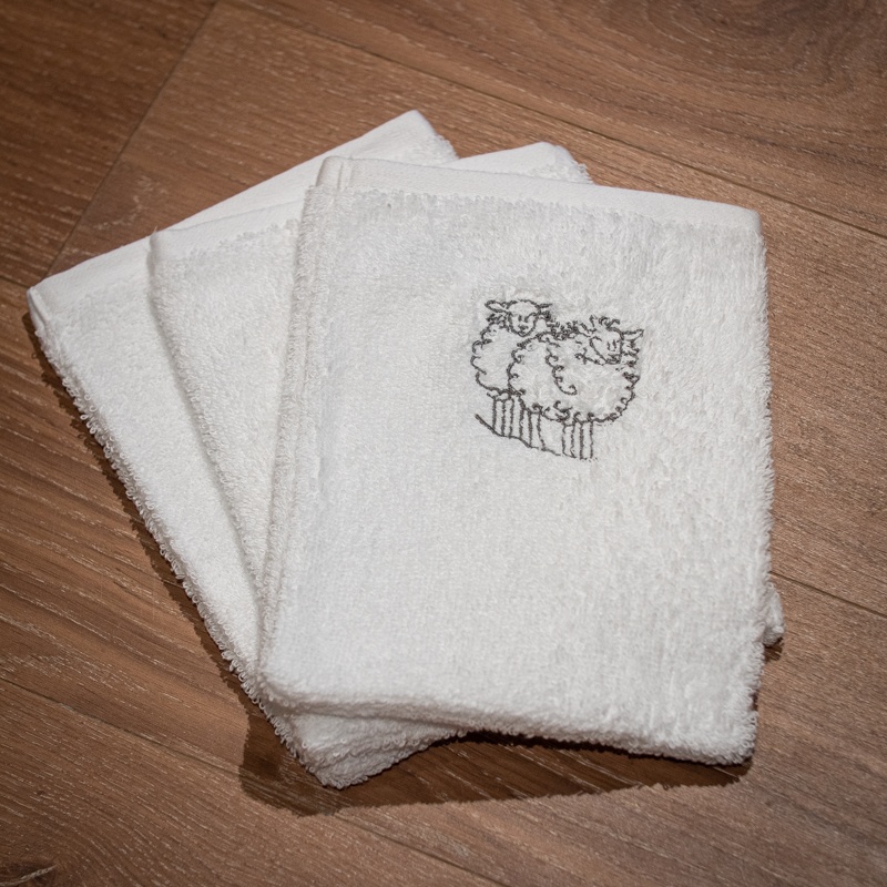 Vous pourrez assortir le gant de toilette et le linge de bain de manière générale à la housse de couette et aux luminaires de la collection mouton.