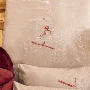 Disponible en plusieurs dimensions, la housse de couette Télésiège s’adapte à toutes les tailles de lit et apportera une décoration montagne et élégante à n’importe quelle chambre, qu’il s’agisse d’un chalet de montagne ou d’une chambre à la décoration inspirée des sommets.