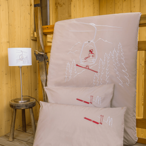 Pour une parure de lit montagne harmonieuse, associez cette housse de couette Télésiège avec les taies d’oreiller assorties (carrées ou rectangulaires). Découvrez également les autres articles de la collection, comme les draps housses et les plaids, pour créer une décoration montagne authentique et raffinée.La housse de couette est brodée sur une percale de coton blanche, 80 fils/cm².