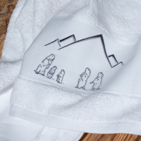 The white bath sheet with marmots is the towel you need to keep the mountain spirit in your bathroom.