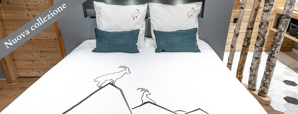• Percalle di cotone : il percalle di cotone è una garanzia di qualità perché è realizzato con fibre di cotone di qualità e le fibre sono strettamente intrecciate. Il percalle di cotone offre quindi un comfort innegabile. Si parla di percalle di cotone quando il cotone ha 80 fili per cm2. Tutti i nostri copripiumini da montagna e da mare sono realizzati in percalle di cotone. Tutti i nostri copripiumini da montagna e da mare sono realizzati in percalle, una scelta ovvia perché questo tessuto è di facile manutenzione e durerà per anni. La nostra biancheria da letto di montagna in percalle di cotone è adatta sia per gli hotel che per l'uso personale I copripiumini Vagabonde daranno un valore aggiunto al vostro arredamento di montagna. Tutte le lenzuola di montagna Vagabonde sono realizzate in percalle di cotone al 100%, con 80 fili per cm2. La biancheria da letto di montagna comprende set di biancheria da letto coordinati. Il copripiumino da montagna si abbina al lenzuolo e alle federe. Le federe sono intercambiabili tra i copripiumini perché utilizziamo sempre gli stessi colori di filo da un copripiumino all'altro. La biancheria da letto Mountain è sempre creata utilizzando i motivi tradizionali della montagna, ma con un design pulito e contemporaneo. Per questo diamo sempre un tocco contemporaneo alla biancheria da letto di montagna. Attribuiamo grande importanza alla scelta dei materiali utilizzati per la realizzazione dei nostri copripiumini. Tutti i copripiumini di montagna sono ricamati su percalle di cotone al 100%.
