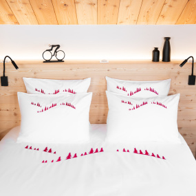 I copripiumini sono ricamati o stampati? Tutti i copripiumini di montagna sono ricamati. Tutti i disegni di montagna sono creati nei nostri uffici nel cuore delle Alpi, vicino a Grenoble. Tutti i disegni di montagna sono posizionati al centro dei copripiumini o come bordo e sono ricamati. La produzione e il ricamo sono realizzati in laboratori in Portogallo.