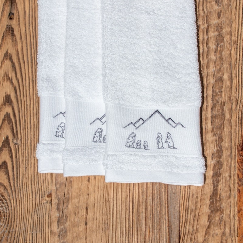 L'asciugamano ospite disegno marmotta bianco è un pezzo senza tempo per il vostro arredamento di montagna.Perfetto per il bagno di uno chalet, l'asciugamano presenta un grazioso ricamo a tema montagna e conferisce eleganza e sobrietà ai vostri interni.Il disegno ricamato dell’asciugamano in stile montagna vi ricorderà le vostre escursioni cullati dal richiamo delle marmotte. L'asciugamano per ospiti si abbina perfettamente alla biancheria da bagno disegno marmotta in generale, ma anche al copripiumino disegno marmotta, alle luci e alle stoviglie.