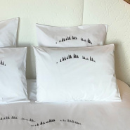 Dimensioni della federa bosco di abeti di montagna 50x70cm Colori Bianco, grigio ricamato Materiale: Percalle di cotone (80 fili/cm²) Istruzioni: Lavare a 40°C, asciugare in asciugatrice e stirare per un risultato ottimale.