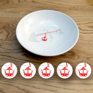 Il piatto fondo disegno funivia rossa si abbina perfettamente alla tazza funivia rossa, al piatto da dessert, al piatto da pranzo e alla ciotola funivia rossa.