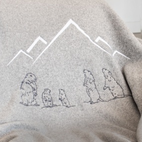 Plaid grigio in stile montagna con disegno stambecco morbido e spesso